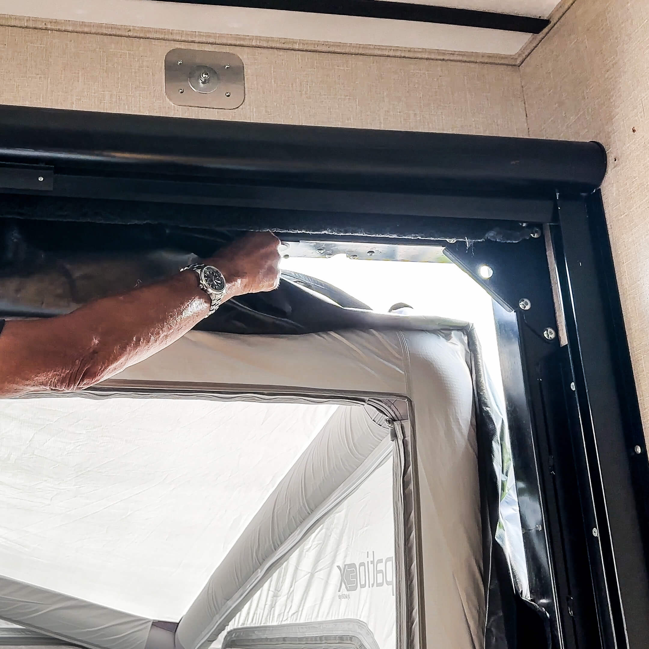 Fits toy haulers with 8′ door and existing patio rail system
