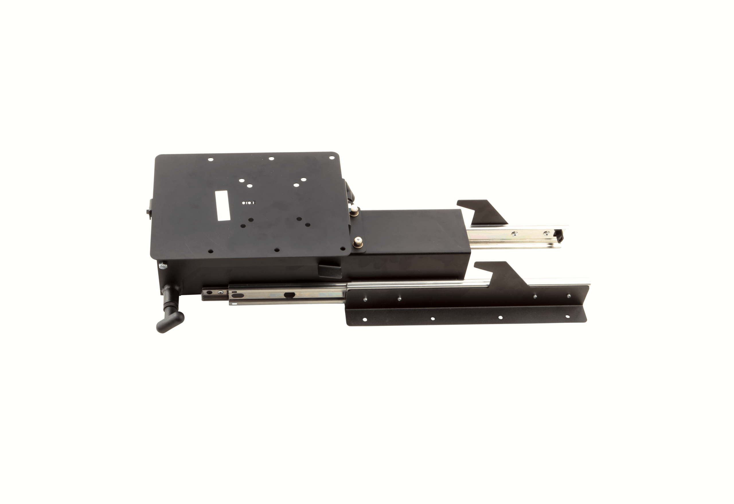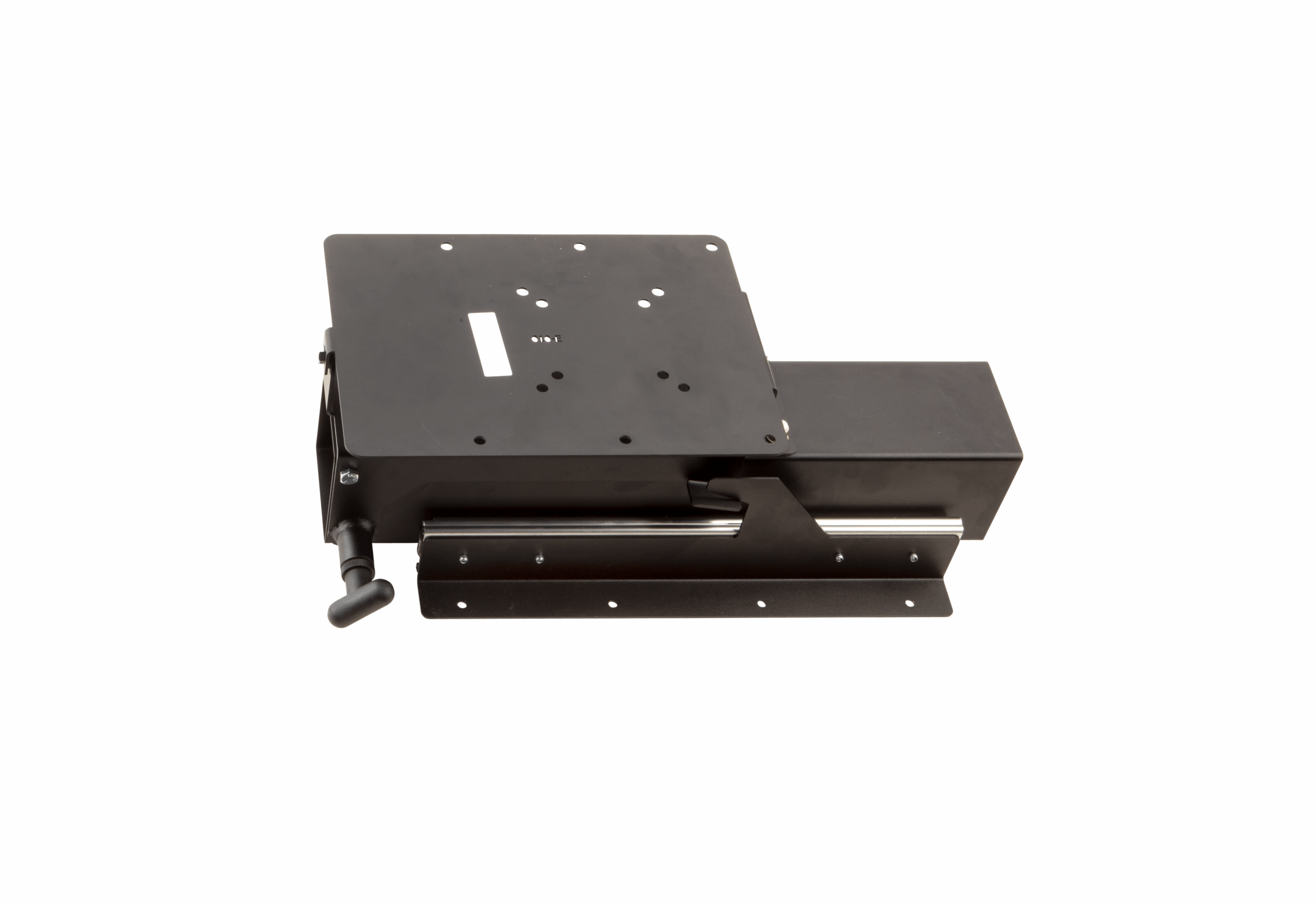 Want to watch TV outside? This slide-out ceiling TV mount fits easily in the cargo bay of your RV. Simply pull out the slide, flip down the bracket and swivel your TV or monitor into the ideal viewing position.