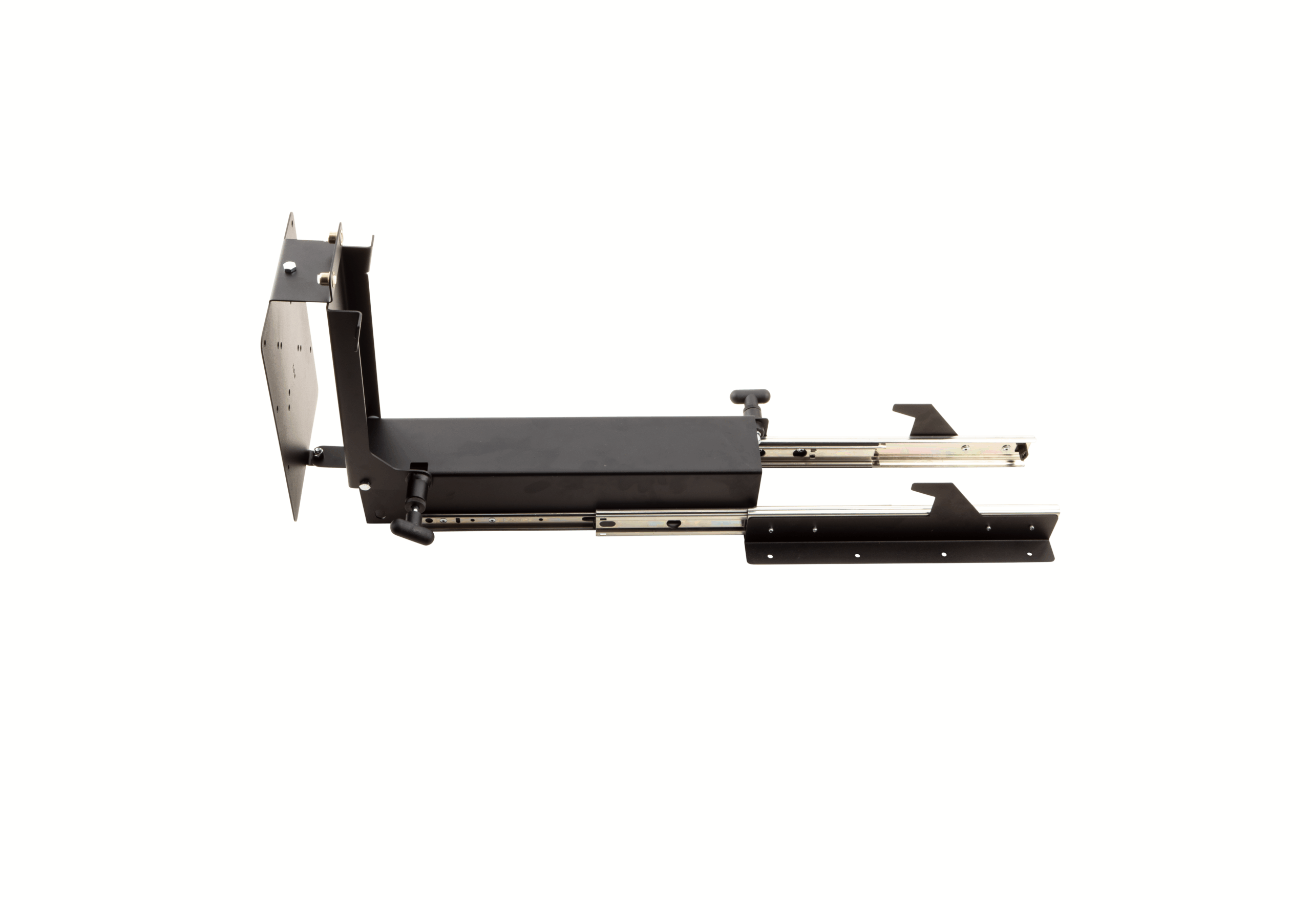 Easily slide out, flip down with release latches