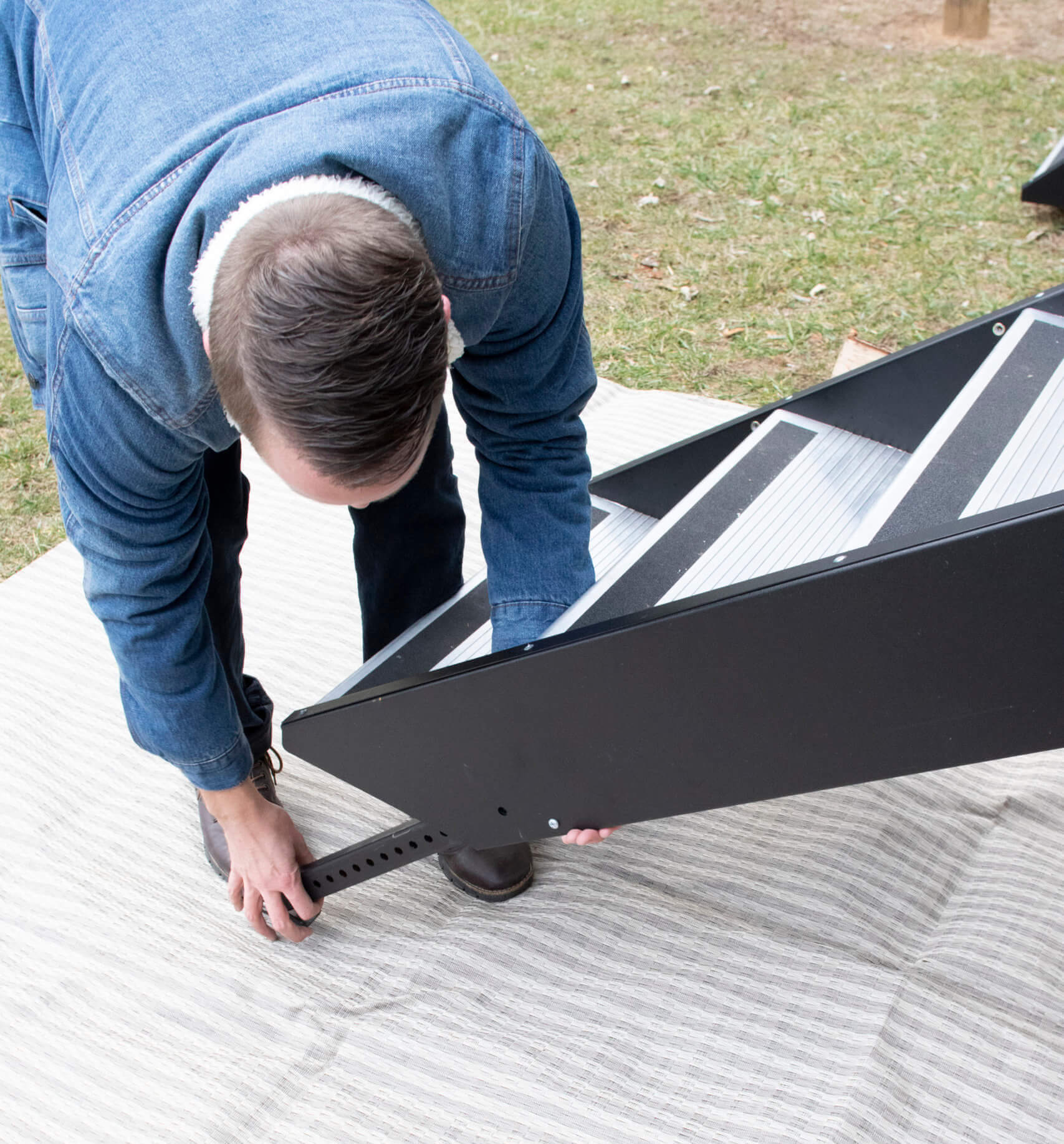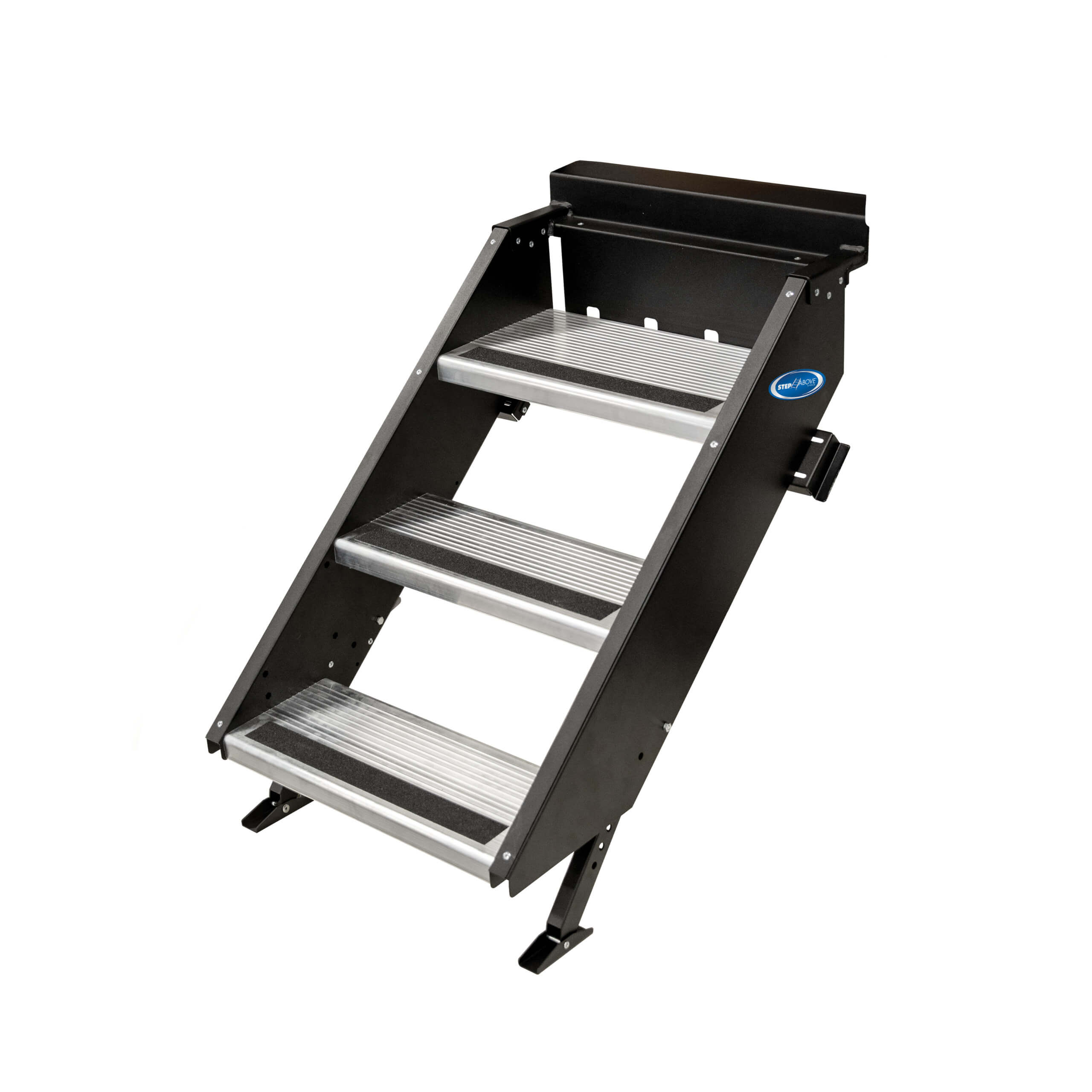 Upgrade your trailer or 5th wheel with our innovative StepAbove RV entry step system to give you bounce-free, wobble-free stability. With adjustable feet, rough terrain is no problem for your StepAbove. Easily store and lock the StepAbove into your door entrance.
