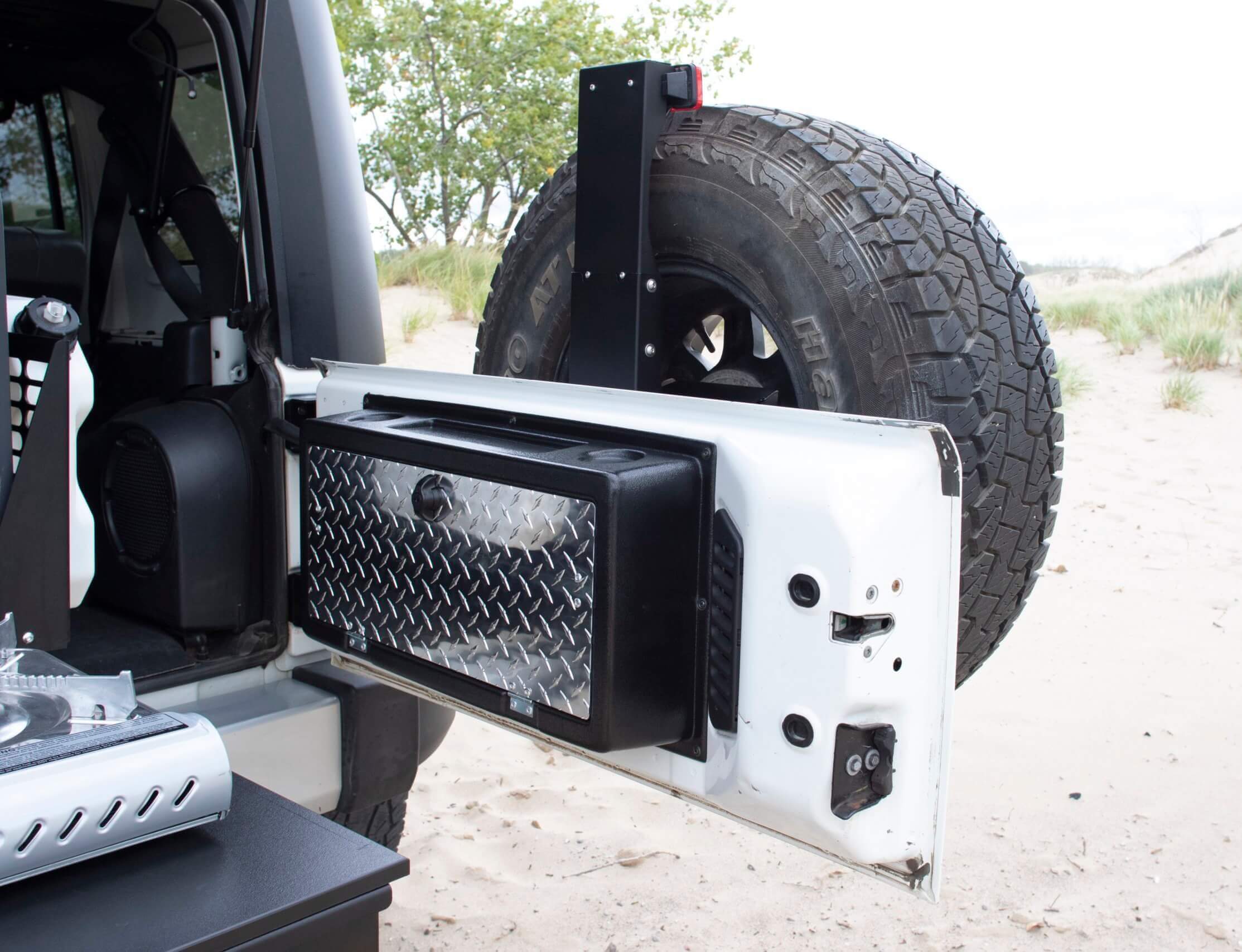 Need more storage space in your Jeep Wrangler? This hard-cover StoreGate unit holds up to 35 pounds of gear. Its locking door gives you added security, no matter where you travel.