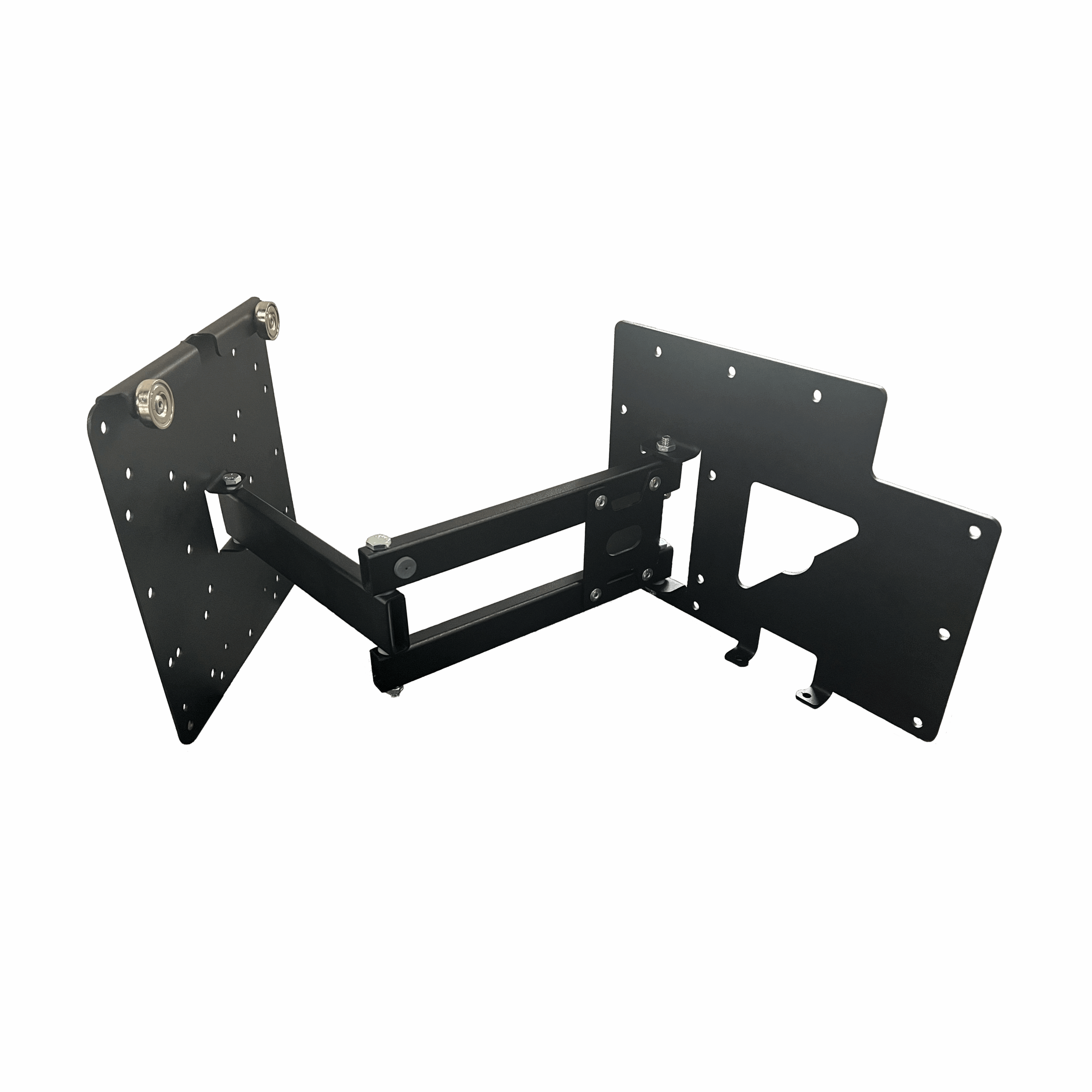 The MORryde TV1-096H Swinging Wall Mount fits flat panel TVs with VESA mounting patterns of 75x75, 100x100, 100x200, or 200x200. It provides left or right viewing orientation to help position the TV as needed. The mount uses a double-joint extension arm for swing-out adjustment and is rated for a 25 lb weight capacity. For travel applications, the TV1-096H locks in place to help keep the TV secure while in motion.